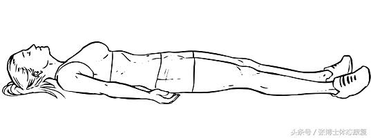 1、仰卧收腹下压,如下图所示,呼气将肚脐向内收,感觉腰围缩小,腹部下沉向下把腰椎压在地上,保持腹部收紧的状态,不要憋气,均匀呼吸,每组保持30-60秒,做3-4组